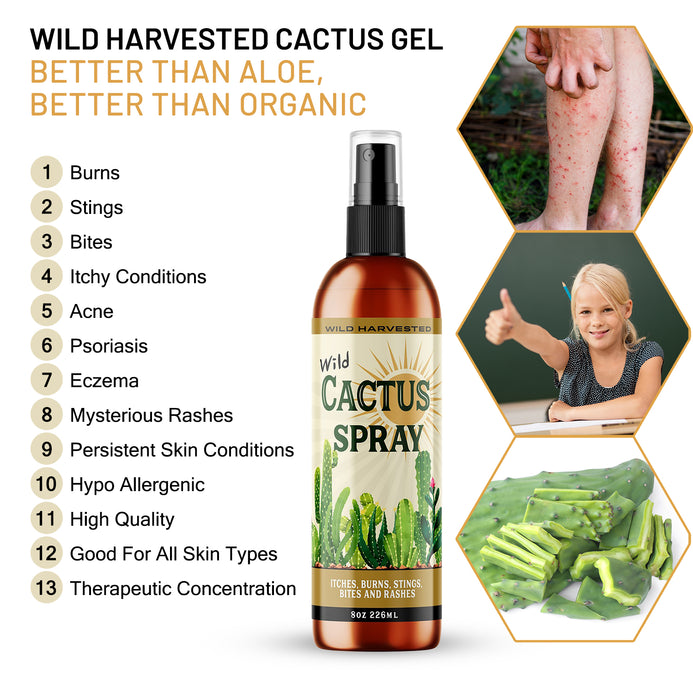 Wild Harvested Cactus Spray - “Better than Aloe, Better than Organic” Natural Wild Cactus Ointment. Instantly Soothes Sunburns & Rashes. Immediate Itch and Sting Relief. Great for Minor Cuts & First Aid.